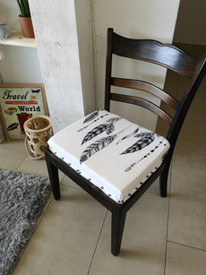 Après un bon temps de séchage (quelques heures) j'ai commencé l'assise en ajoutant le fameux "coussin". Pour le faire j'ai récupéré une housse de coussin que je n'utilisais pas, des clous tapissiers (de couleur noire, à choix), un marteau, de la mousse, un tourne vis, un ciseau et une agrafeuse.