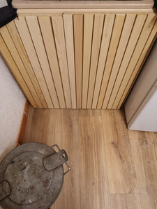 donc j'ai posé un nouveau sol en pvc effet parquet, facile à poser avec du double face ( je suis en location, donc plus simple à retirer).